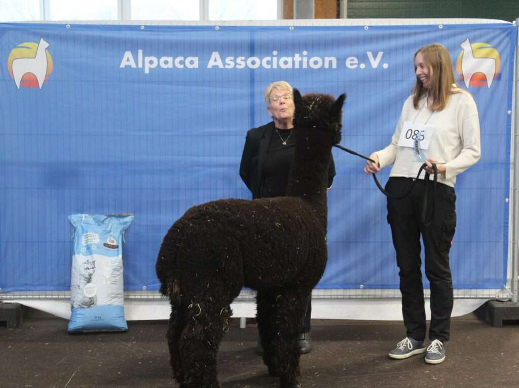 Dieser Hengst vereint wie kaum ein zweiter ein sensationelles Vlies mit Dichte, Crimpstyle, Feinheit, Gleichförmigkeit mit einem tollen Körperbau und Typ. Und dies mit einer farblichen Genetik, die es in sich hat. Er hat sich auch durch seine Nachkommen bewiesen die sowohl Best of Show in Ilshofen als auch Beste Stute auf der World Alpaca Conference 2023 gewinnen.