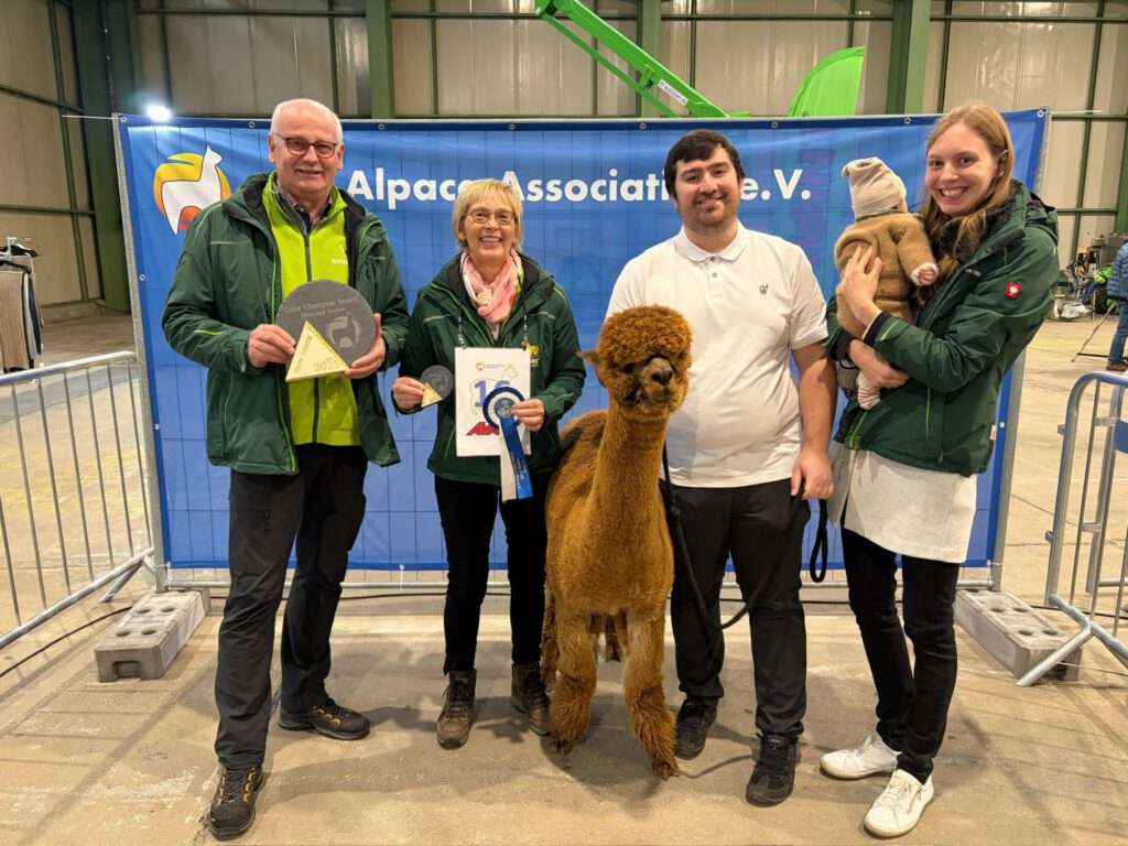 Vaiana ist eine Championstute, die aus vielen Champions und Best of Shows stammt. Sie ist ein Complete Package mit guter Knochenstärke, korrektem Körperbau, gute Kopfbewollung und sehr guten Vlieseigenschaften. Ihr Vlies ist ein regelrechter Woweffekt und sieht unter allen Umweltbedingungen sehr hochwertig aus. Sie hat einen hochfrquenten Crimp, der sich gleichmäßig über Stapel und Körper verteilt, gepaart mit Feinheit und einer guten Dichte.